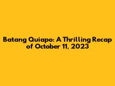 Batang Quiapo: October 11, 2023 Full Episode Recap