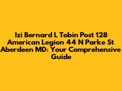 Hey guys! Today, we're diving deep into everything you need to know about the Izi Bernard L Tobin Post 128 of the American Legion, located at 44 N Parke St, Aberdeen, MD. Whether you're a veteran, a family member, or just someone interested in supporting our troops and veterans, this guide is for you. We'll cover its history, significance, programs, and how you can get involved. So, let's get started!