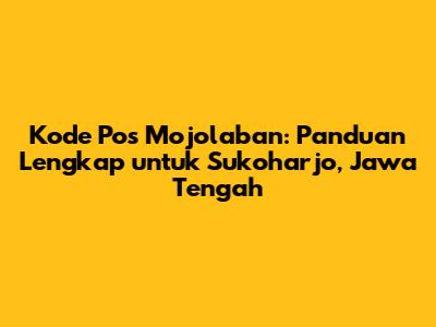 Kode pos Mojolaban adalah informasi penting yang seringkali dicari, terutama bagi mereka yang berdomisili atau memiliki kepentingan di wilayah Mojolaban, Sukoharjo, Jawa Tengah. Memahami kode pos ini sangat krusial untuk berbagai keperluan, mulai dari pengiriman surat dan paket, hingga pendaftaran online dan keperluan administratif lainnya. Artikel ini akan membahas secara mendalam tentang kode pos Mojolaban, memberikan informasi yang akurat dan mudah dipahami.
