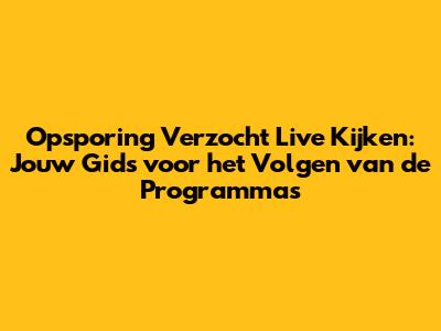 Opsporing Verzocht Live Kijken: Alles Wat Je Moet Weten