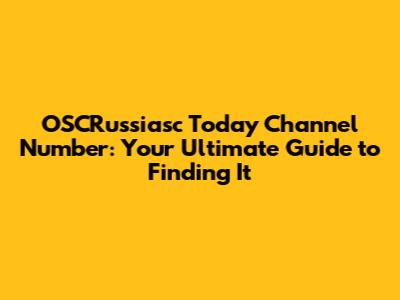 OSCRussiasc Today Channel Number: Your Ultimate Guide