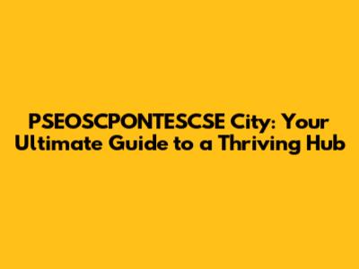 PSEOSCPONTESCSE City: Your Ultimate Guide